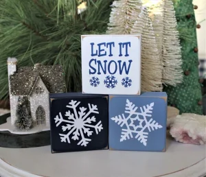 The kit will include standing wooden block, snowflakes stencil, paints and paintbrush.